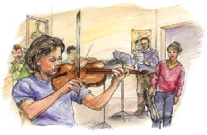 play third fiddle 跑龙套;做无足轻重的角色,当第三把手。其实摩西更希望fiddle小提琴这个单词来自拉丁词根fid,fidel,表示信任、真相、相信,比如单词confidence自信,因为我们都是从心里相信或信任某人或某事,这就又符合我们常说的触动了或拨动了我们的“心弦”,提琴不就是一种弦乐器吗,呵呵,摩西又把中西方文化扯到一起了。