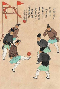 现代生活中再也没有比足球更令人激动不已的运动了。足球的历史可谓悠长久远。早在古希腊就有一种类似今天的手球的游戏。以后,罗马人在此基础上又有所发展。随着罗马人征服欧洲的数百年间,这运动便得以在英伦三岛广为流传。在中国古代,也有一种类似足球的运动,叫做蹴鞠。但可惜的是,蹴鞠没有发展成现代意义上的足球。 最初的足球比赛相当粗野、激烈、有的队员故意踢对方的小腿而不是踢球,简直和斗殴毫无二致。 1823年11月21日,发生了一件改变整个世界足球面貌的具有历史意义的事件。这天,一群学生在操场上踢球。一个叫威廉·韦步埃利斯的15岁男孩在比赛进行中抱着球跑,这个简单而平常的动作竟然把足球世界分为两部分:允许用手持球的成为橄榄球,允许用脚踢、头顶的成为足球。这以后,一些热心于足球运动的人在伦敦一家旅馆里召开会议,起草足球协会的章程,其中有一条明确规定,即禁止手持球走。而允许手持球走的橄榄球联合会直到1871年才成立。 Modern football developed with the growth of large industrial towns. In the early 19th cent. the game declined in popularity, but it survived among public schoolboys and at Cambridge University where, in 1848, a first attempt was made to compile common rules. Previous rules were local, with disagreements about charging and hacking, the size and shape of the ball, and the duration of the game. A further attempt to produce standard rules in 1863 led to the formation of a Football Association, from which some clubs soon seceded to follow a handling code.