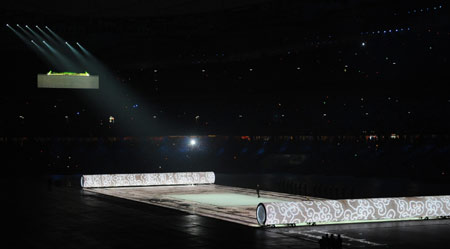 Artists perform during the opening ceremony of the 2008 Beijing Olympic Games at the National Stadium, also known as the "Bird's Nest", on August 8, 2008. [Agencies] |