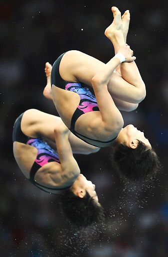 |  The Chinese team of Wang Xin (R) and Chen Roulin compete in the women's 10m synchronised platformdivingfinals held at the National Aquatics Center in the 2008 Beijing Olympic Games in Beijing on August 12, 2008. China was first, Australian second and Mexico third. [Agencies] |  Beijing - Teenagers Wang Xin and Chen Ruolin gave China its third straight victory in Olympic diving, easily winning the women's 10-meter synchronized competition on Tuesday. Chen and Wang totaled 363.54 points in an event China has won since it was introduced at the 2000 Sydney Games. "They were amazing as always," U.S. diver Mary Beth Dunnichay said. Australia's Briony Cole and Melissa Wu took the silver at 335.16, while Mexico's Paola Espinosa and Tatiana Ortiz earned the bronze at 330.06. The gold medal was a delayed birthday present for Wang, who turned 16 on Monday. Chen is 15. The duo could have more celebrating in store since Chen and Wang are ranked 1-2 on individual platform. The Chinese also won synchro events in women's 3-meter springboard and men's 10-meter platform. Chen and Wang led through all five rounds, earning a perfect 10 for execution from one judge on their second dive, a reverse from the pike position. Before taking the medals podium, Chen and Wang circled around it to shake hands with the Mexicans and Australians, continuing a tradition the victorious Chinese began after earning their first gold medal. The tiny Chinese pair held hands as they stepped onto the podium, then waved and smiled while cheers rang out and flashbulbs popped around the vast reaches of the arena's seating area.
