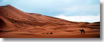 The People 人类 The Sahara Desert covers over 3.5 million square miles and has only 2.5 million inhabitants - roughly 1 person per square mile (0.4 sq km)- which is one of the lowest population densities on earth. Wherever abundant food and water sources occur, one will find relatively large masses of people and wildlife. On the whole, the Sahara is one of the harshest environments known to man. 居住人口极少,大约每人占地0.4平方公里,是世界上最少的人口密度。 Many researchers have gone into the Sahara looking for clues as to how long ago humans began inhabiting the desert. According to archeologists, the Sahara was much more densely populated thousands of years ago when the desert's climate was not as harsh as it is today. Fossils, rock art, stone artifacts, bone harpoons, shells and many other items have been found in areas which today are considered too hot and dry to inhabit. This suggests that these areas were quite habitable thousands of years ago, but that the climate of the Sahara has since changed drastically. The artifacts found were located near remains of giraffe, elephant, buffalo, antelopes, rhinoceros, and warthog, as well as the remains of fish, crocodiles, hippopotamuses and other aquatic animals which suggests that thousands of years ago water was quite abundant in the Sahara. 很多研究者经常深入撒哈拉去寻找人类是多久以前就在沙漠中生活了。 据历史学家调查,在千方年前的撒哈拉,人口密度比现在要高,是因为那时的沙漠的条件没有现在那么险恶。 The majority of the people living in the Sahara Desert are nomads, which means that these people continuously move from region to region in search of better living conditions. It is believed that the first nomadic peoples came to this region after domestic animals were introduced to the Sahara 7,000 years ago. Researchers believe that sheep and goats were introduced to the Sahara region by the Caspain culture of northern Africa. 居住在沙漠里的大部分是游牧民,也就说他们不停的迁移,为了找到更适合生存的环境。 Evidence suggests that the Sahara accumulated diverse groups which quickly formed dense populations throughout the region. The majority of the groups lived separately, but depended on each other for trade. External trade developed gradually and the mobility of the nomads certainly contributed to the growing success of trade with other countries and continents. For example, Mauritania contained valuable copper resources and as a result, this copper was traded to the Bronze Age Civilizations of the Mediterranean. 这些游牧民族也靠和外界的较易生活。