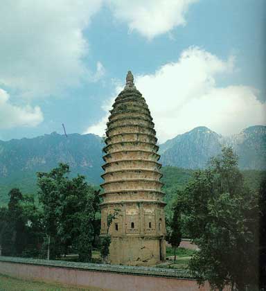 Highlight of Henan Province, Songshan Mountain lies southwest of Zhengzhou and it is one of the most famous mountains in China because of the rugged beauty of its peaks and the Bonsai-like appearance of its beautiful old trees. Shaolin Temple, the most famous Buddhist temple in China and the largest of the Songshan range, is located on Shaoshi Mountain. Shaolin Temple and Shaolin Gongfu (martial arts) have long taken on a legendry color and are famous both in and outside China.