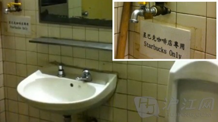 Starbucks' head honchos in Hong Kong may have some explaining to do. 香港星巴克的老板大概需要出面做些解释了。 After photos of a "Starbucks Only" water spout in a bathroom emerged on the web, many customers questioned whether Starbucks is using "toilet water" to brew its coffee. 自从厕所中“星巴克咖啡店专用”水龙头的照片传到网上之后,许多顾客都在质问,他们是否在用厕所用水制作咖啡。 The series of photos, reportedly taken at the chain's Bank of China Tower location, appear to show a man retrieving water from a spout in a men's bathroom a few feet away from a urinal and then using a container on a cart to transport it to the coffee shop. 据报道,该系列照片拍摄于香港中环中银大厦,一男子从男厕所小便池附近的水龙头中接水,随后用手推车上的容器将水转入咖啡店里。 Hong Kong-based tabloid Apple Daily first published images of the questionable practice along with a report stating that Starbucks staff fetch water from the public restroom in the building's parking garage several times every day and use it to brew coffee. 香港本地报纸《苹果日报》率先登出这些令人质疑的照片,并附上报道,称星巴克店员每天从中银大厦停车场的公共厕所里多次取水,用于煮咖啡。 The publication, which sent reporters to investigate after receiving a tip, noted that employees filter the water before brewing. It is believed that the practice has been occurring since the Starbucks first opened in 2011. 该出版机构还派送记者在给付小费后进行深入调查,发现员工在烹煮咖啡前会先滤水。据信这种做法自2011年这家星巴克首次营业时就出现了。