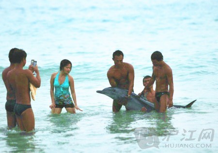 Tourists at a beach in Sanya City were accused of contributing to the death of a distressed dolphin by mistreating it, lifting it out of the water and posing with it in photographs that were posted to the Internet. 几名三亚市海滩游客被指虐待搁浅海豚,他们将海豚抬出水面与之合影,并将照片发布在网络上。这些游客的行为最终导致海豚死亡。
