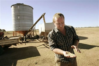 Glen Phillips has worked this farmland in the state of South Australia for 34 years. As the earth sifted like dust between his fingers, Phillips squinted into the empty blue sky, which has come to symbolize one of Australia's worst droughts on record.