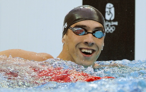 US swimmer Michael Phelps smiles after the men's 200m freestyle swimming final at the National Aquatics Center in the 2008 Beijing Olympic Games on August 12, 2008. Phelps broke the world record in the men's 200 metres freestyle with a time of one minute 42.96 seconds at the Beijing Olympics. [Agencies]