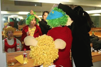 开始前,演员们紧张化妆