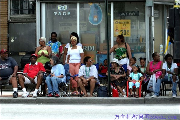 从密苏里大道到班纳克公园之间的人行道上站满了观众。